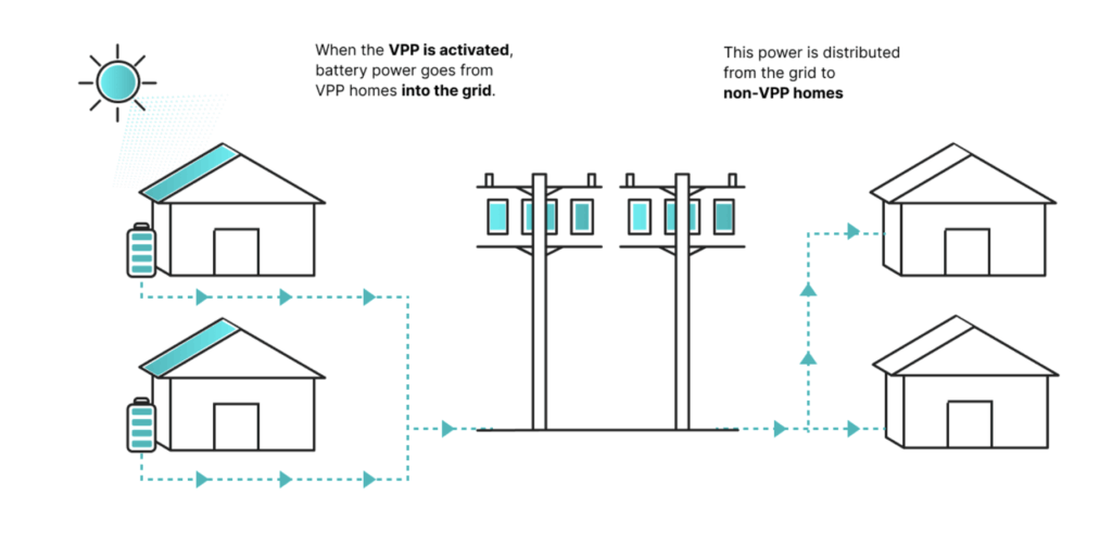 VPP stands for virtual power plant and is a process where the spare energy stored in your battery can be combined with others to help stabilise the electricity grid. A VPP allows you to provide some of your battery energy to the VPP provider and in return pay you for that energy.